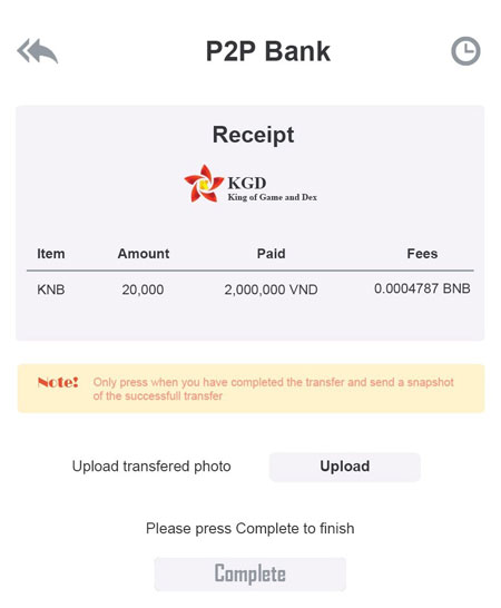 Users can buy more KNB tokens to play games in the ecosystem by using the “P2Bank” section.