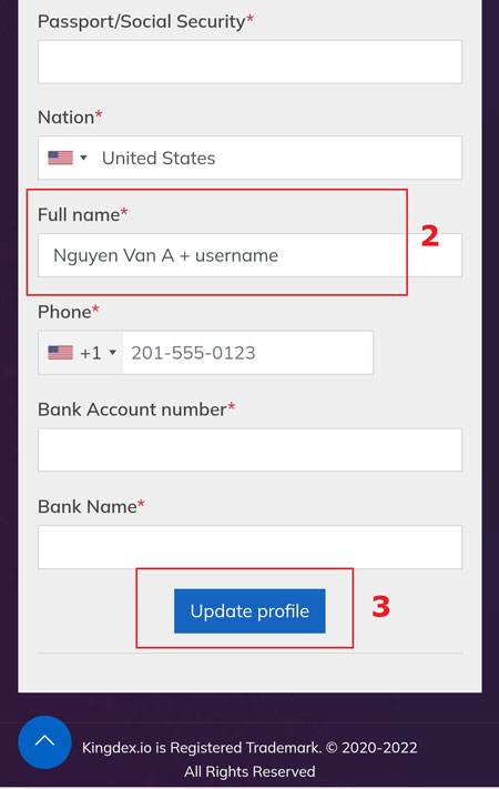Step 2: In the "Profile" section, the user fills in the user's full name + the referrer's username to receive the reward.