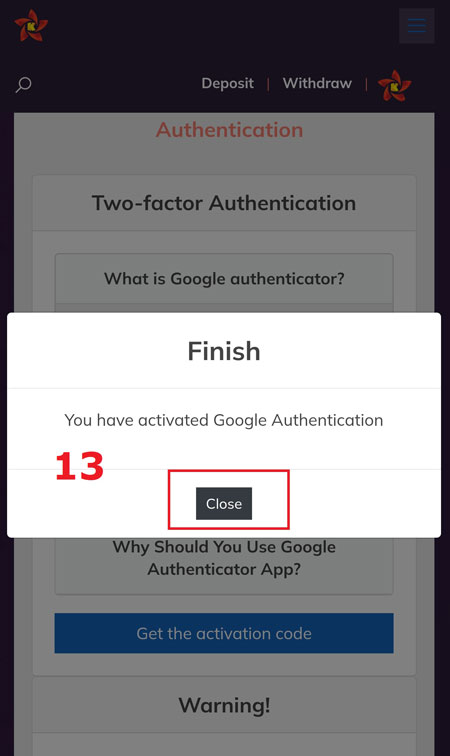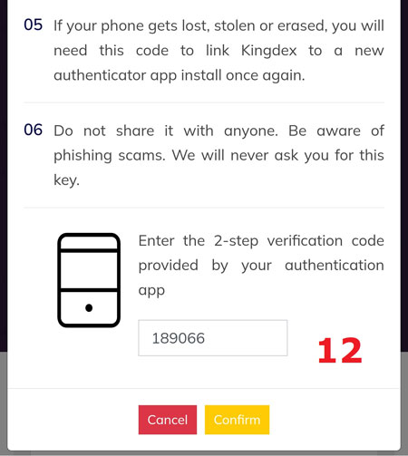 Step 5: After the installation is finished, use the 6-digit key to enter the Google Authentication verification box, click the "Confirm" button to complete the installation process.
