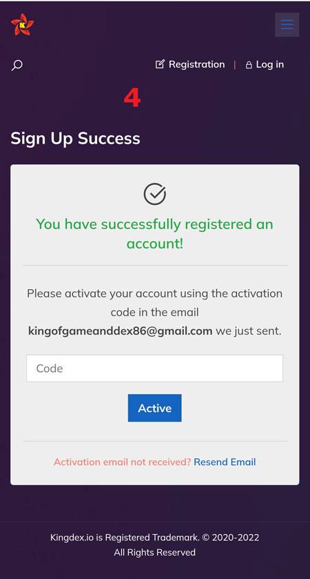 If you have not received the verification code, then click on the "Resend Email" button. Click on "Active" button to next stage.