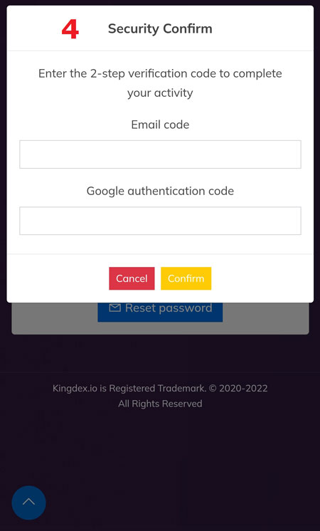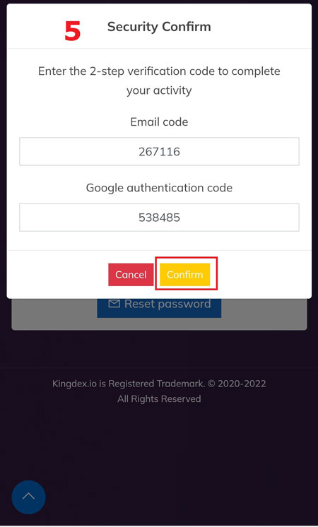 Step 3: Filling in two-factor verification information including email verification code and Google Authentication, then click on "Confirm" button to next stage.