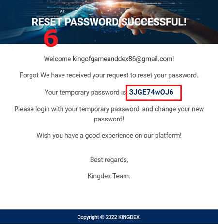Step 4: A temporary password will be sent back to the email address, the user can use this password to login and change another password to make it easier to remember.