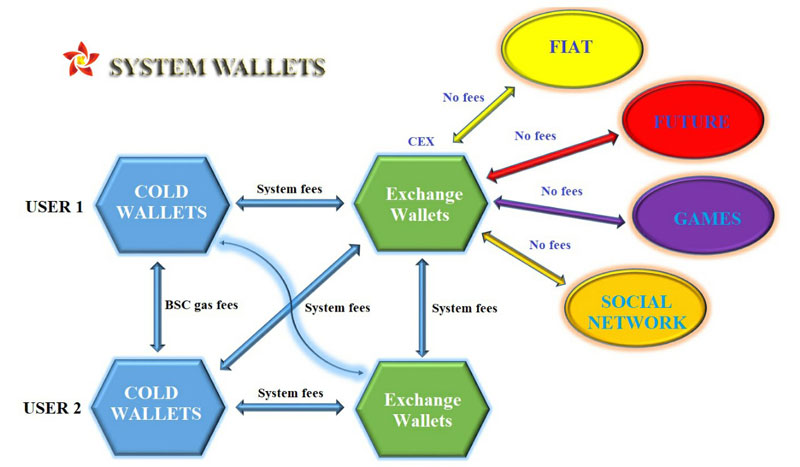 The wallet in the system is a real wallet or a cold wallet, located in the general ecosystem of the BSC system (BEP20), the wallet has the function of storing long-term coins/ tokens. The wallet is secured by offline mode when not logged in, prevents junk coins/tokens and does not allow access to the wallet freely.