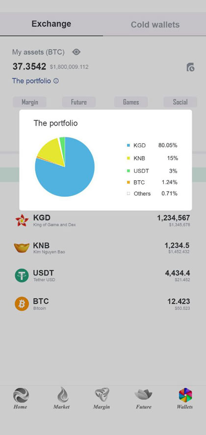 When the centralized exchange KGD CEX is completed, the wallet will be integrated into a Cold Wallet button in the general ecosystem, but the functionality and security still reach a high level. Allows users to store long-term coins/Tokens safely and securely.